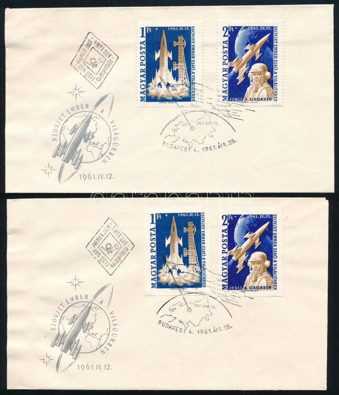 1961 Első ember a világűrben Gagarin fogazott és vágott sor 2 FDC-n (12.600)