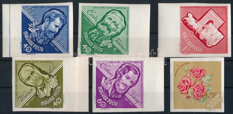 1963 Nagy idők - nagy események 6 klf vágott bélyeg, közte 5 ívszéli