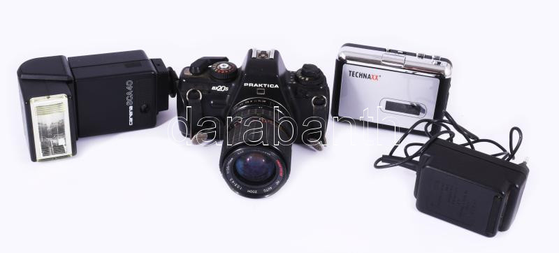 Praktica BX20S fényképezőgép, Prakticar obejktívvel, kiegészítőkkel, tartótáskában.