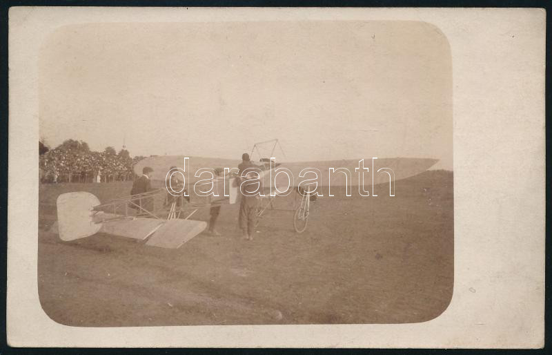 1909 Louis Bleriot bemutatót tart repülőgépével, Budapest Kisrákos katonai gyakorlótér, fotó, 9×14 cm