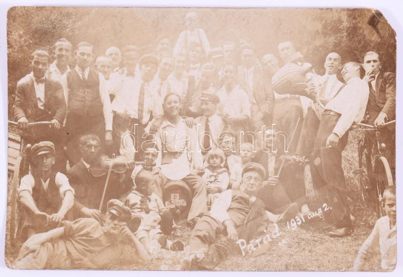1931 Parádi italozó társaság, fotólap, sarokhibákkal, 9x14 cm