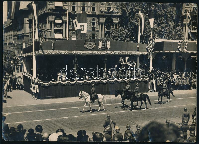 1937 Budapest, Andrássy út, III. Viktor Emánuel olasz király látogatása, fotó, felületén törésnyomokkal, 17×23 cm