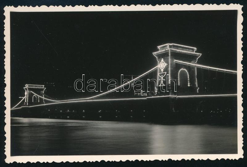 1938 Budapest, Lánchíd, Eucharisztikus Kongresszus, díszkivilágítás, 7,5×11,5 cm
