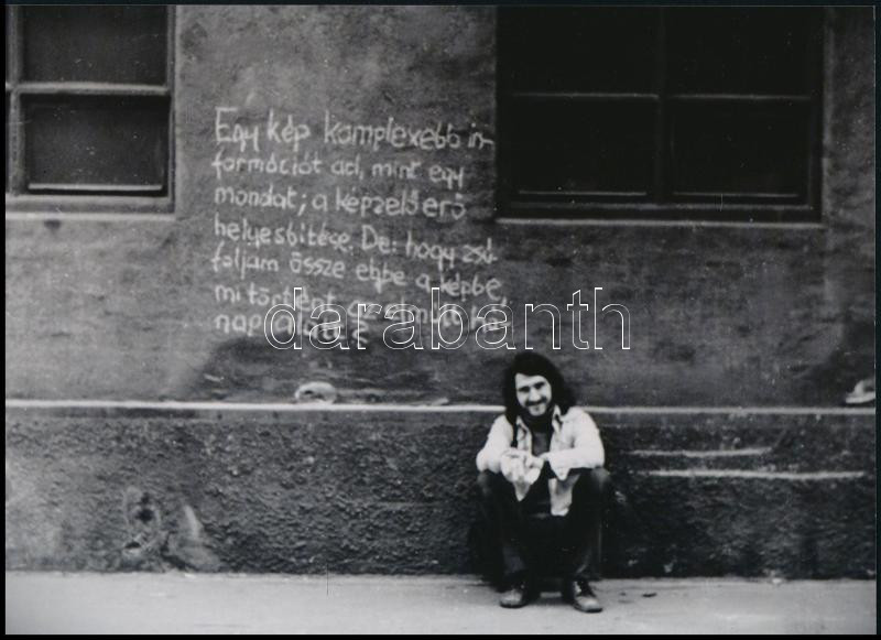 1975 Hajas Tibor (1946-1980) képzőművész performansz alkotása (Levél barátomnak, Párizsba című sorozatából) 1 db modern nagyítás jelzés nélkül, 15x21 cm