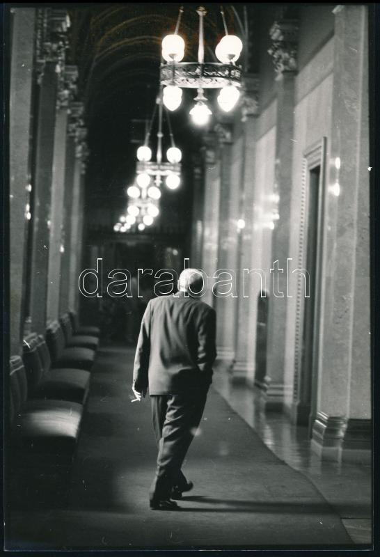 1987 Kádár János a Parlamentben, fotó, későbbi előhívás, hátoldalon feliratozva, 24×16 cm