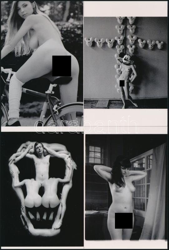 Eltérő időben készült aktfotók tétele, szolidan erotikus felvételek, 5 db modern nagyítás, jelzés nélkül, 15x10 cm