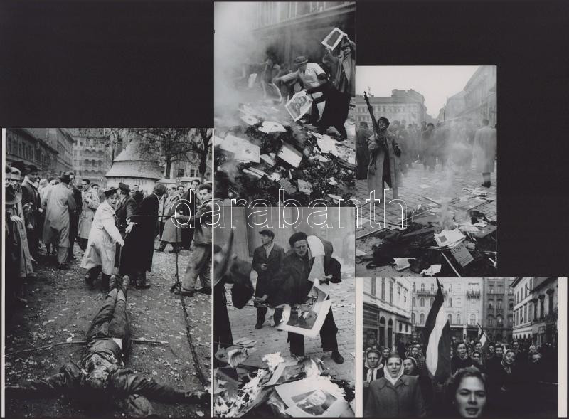 Erich Lessing képriportja Budapesten, 1956 október 23. utáni napokban, 5 db jelzés nélküli modern nagyítás, 21x15 cm és 15x10 cm