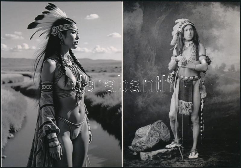 Indiánok találkozása egy tételben, eltérő időben készült felvételek, 2 db modern nagyítás jelzés nélkül, 21x15 cm