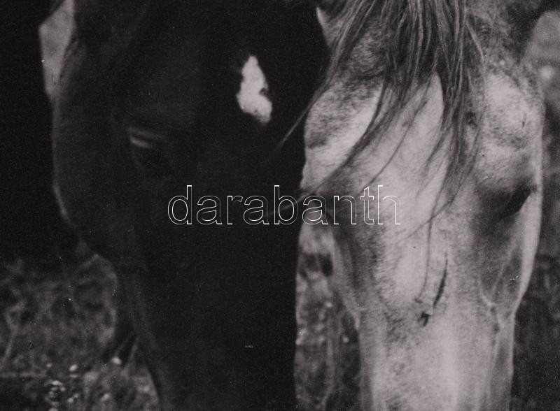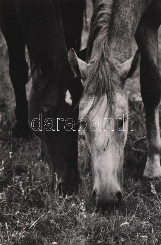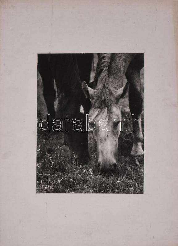 Legelő lovak vintage fotóművészeti alkotás . Jelzés nélkül 39x29 cm Paszpartuban