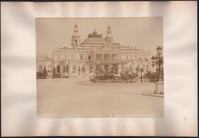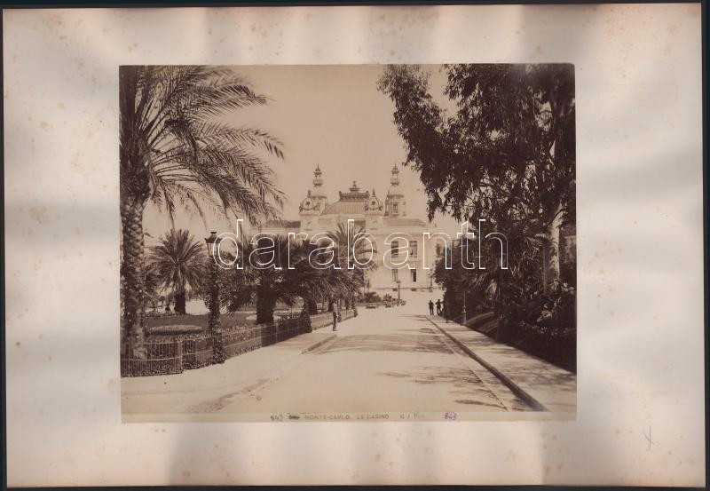 cca 1900 Monaco-i palota és a kaszinó látképei, 4 db fotó kartonon, foltos kartonnal, 21x27 cm
