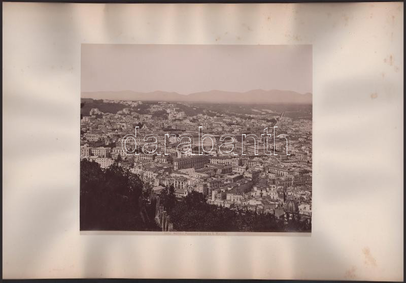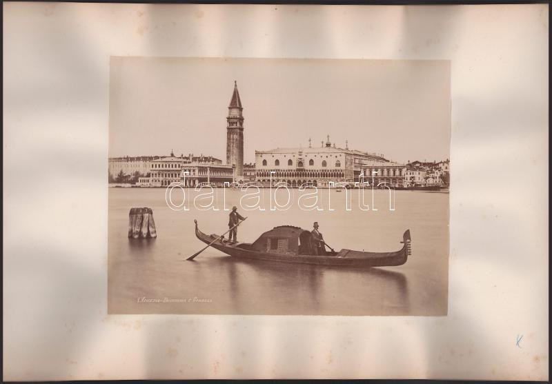 cca 1900 Velence látképe gondolával, a háttérben a Szent Márk tér épületeivel, a hátoldalán Nápoly látképével, 2 db nagyméretű fotó kartonon, foltos kartonnal, 20x26 cm, 20x24 cm, karton: 29x45 cm
