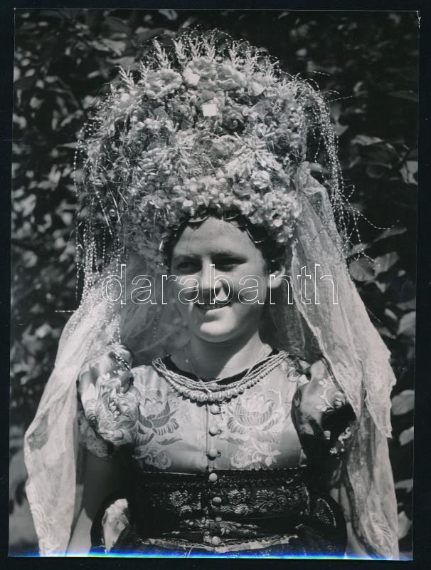 cca 1930-1940 Szendrő István (1908-2000): Matyó menyasszony, hátoldalon pecséttel jelzett fotó, 22,5×17 cm