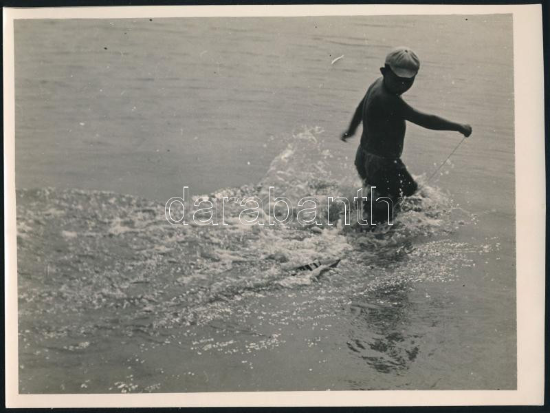 cca 1934 Kinszki Imre (1901-1945) budapesti fotóművész hagyatékából jelzés nélküli vintage fotó (Játék a vízben), felületén törésvonal, 13x17,5 cm