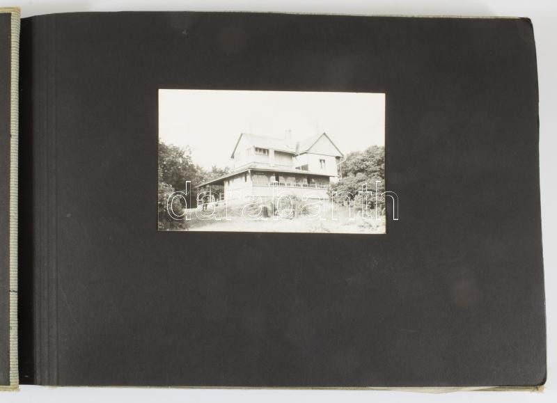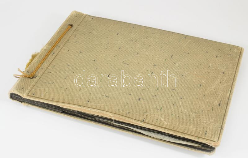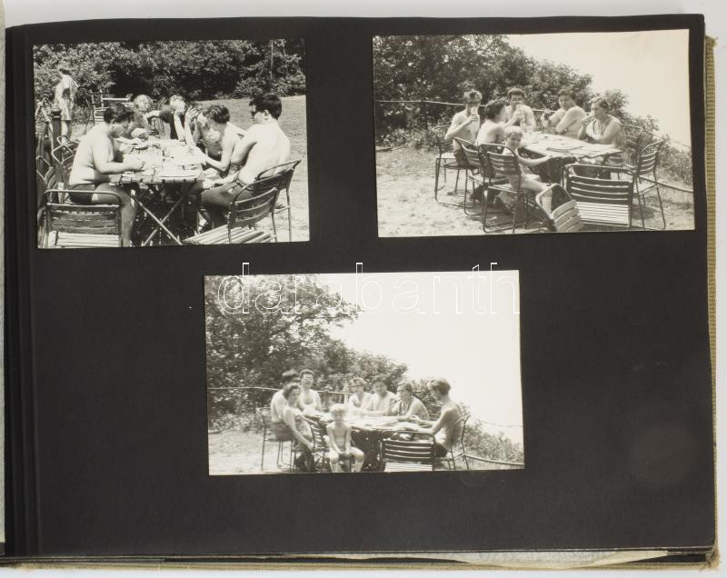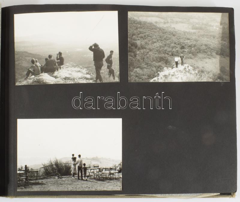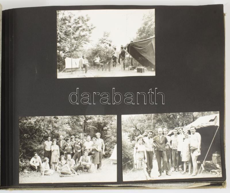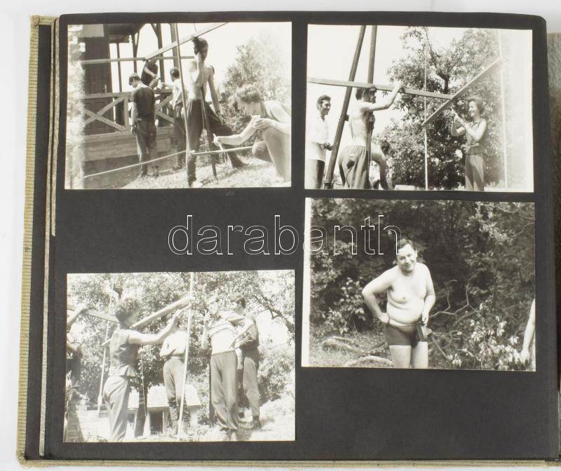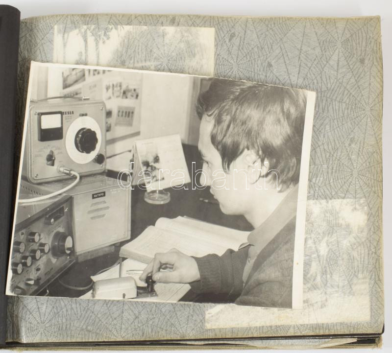 cca 1960-1970 Rádióamatőr társaság fotóalbuma kb. 60 db beragasztott fotóval, zsinórfűzéses vászonkötésben, kissé sérült borítóval, 25x35x2,5 cm