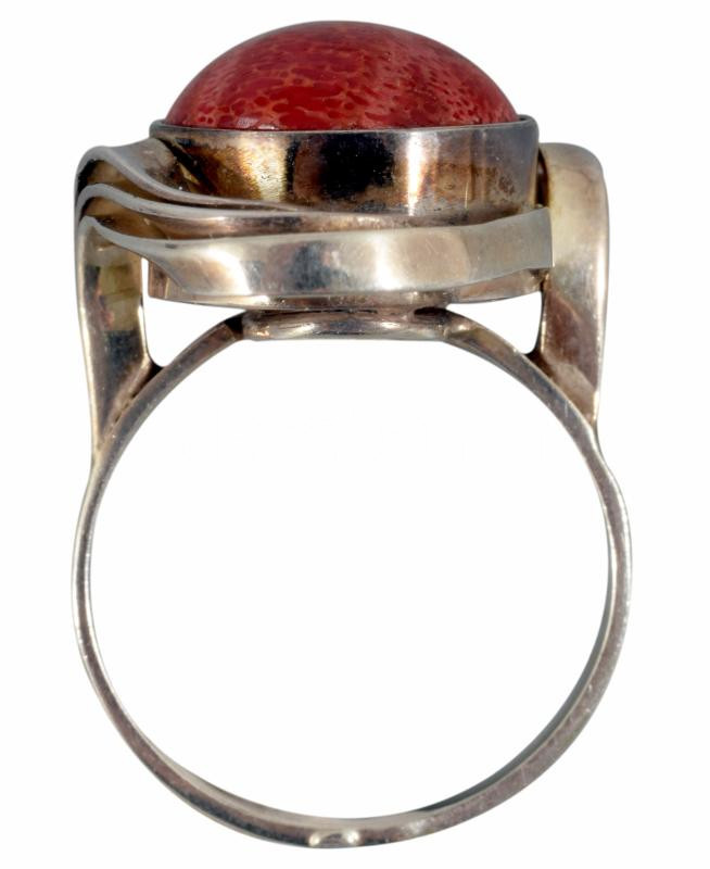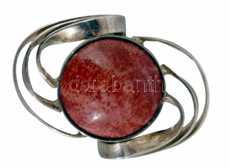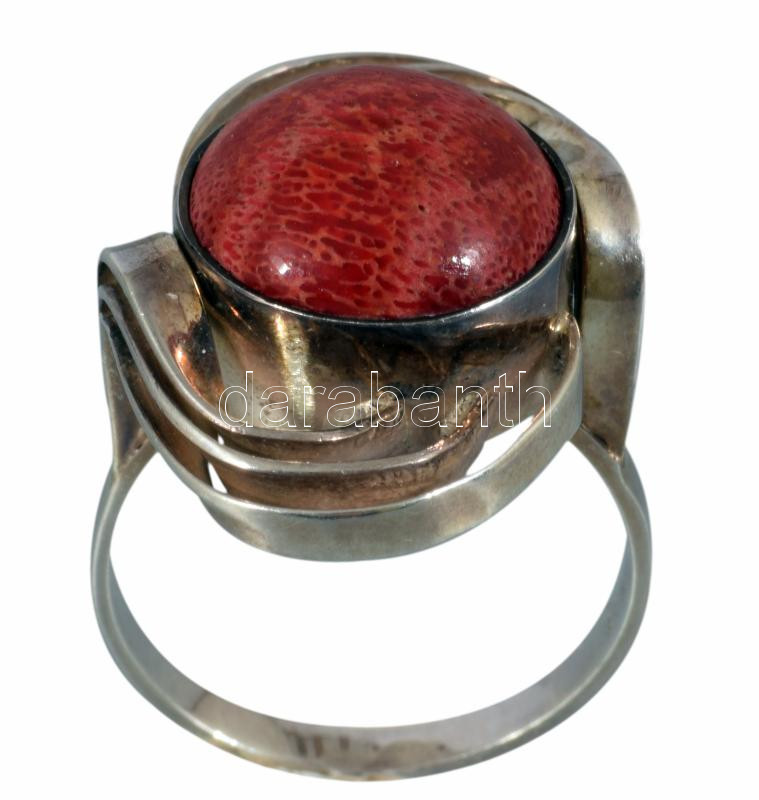 Ezüst (Ag) gyűrű, piros kő berakással. Jelzett, 2004 utáni magyar fémjel, 925 ezrelékes ezüst, m. 51, bruttó 4,5g