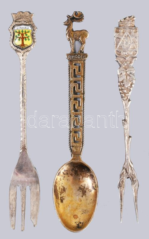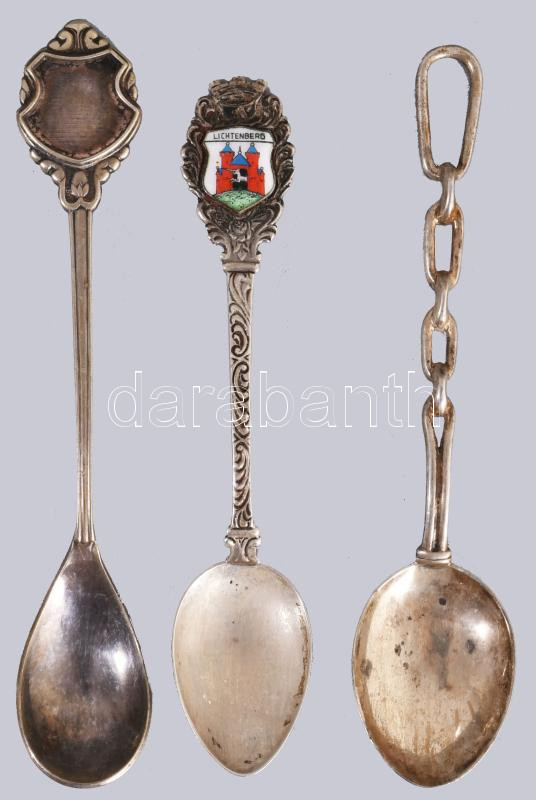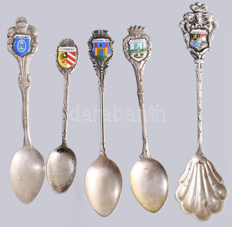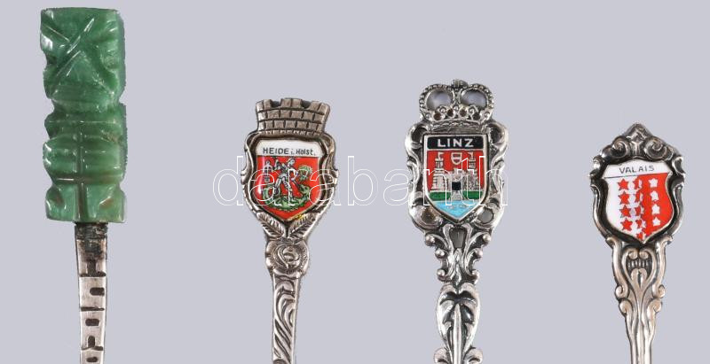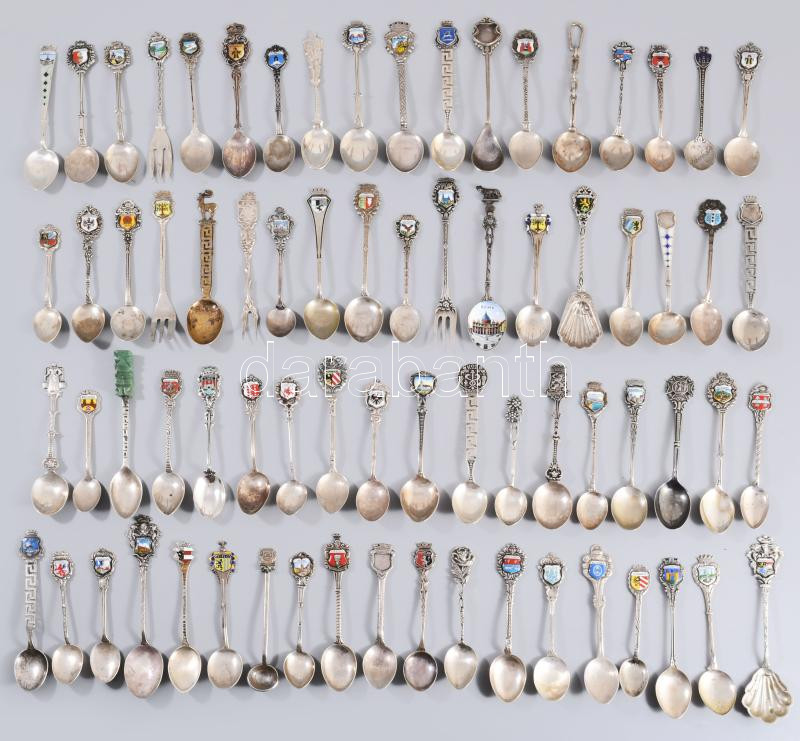 Illusztris ezüst (Ag) díszkanál gyűjtemény, zománcozott díszítéses jelzett darabok a világ különböző részeiről, különböző finomságúak, bruttó 710g