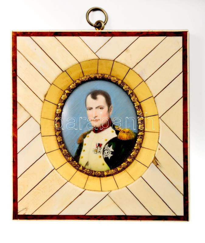 Beschreibung: Bonaparte Napóleon kézzel festett portréja, csont rárakásos keretben, 6x5 cm, 12x11,5 cm