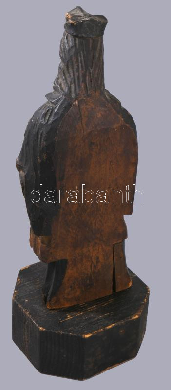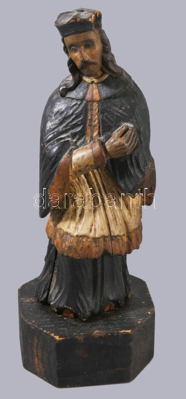 Nepomuki Szent János. Osztrák vagy magyar szobrász, 18. sz. vége, faragott és festett fa, talapzattal, sérüléssel, m: 27 cm