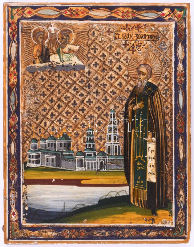 Szent János pátriárka, ikon, olaj fa alapos, sérüléssel, 13,5×10,5 cm