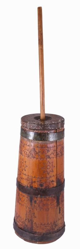 Vajköpülő. 19. sz. második fele, magyar, gazdag vésett mintával, m: 90 cm