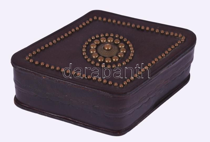 Bőr díszdoboz gyöngyös díszítéssel, 16x11 cm