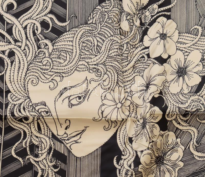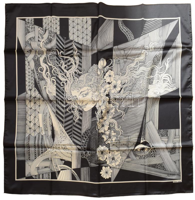 Női selyem kendő Szász Endre által tervezett mintával, jelzett, hibátlan 90x90 cm , eredeti dobozában