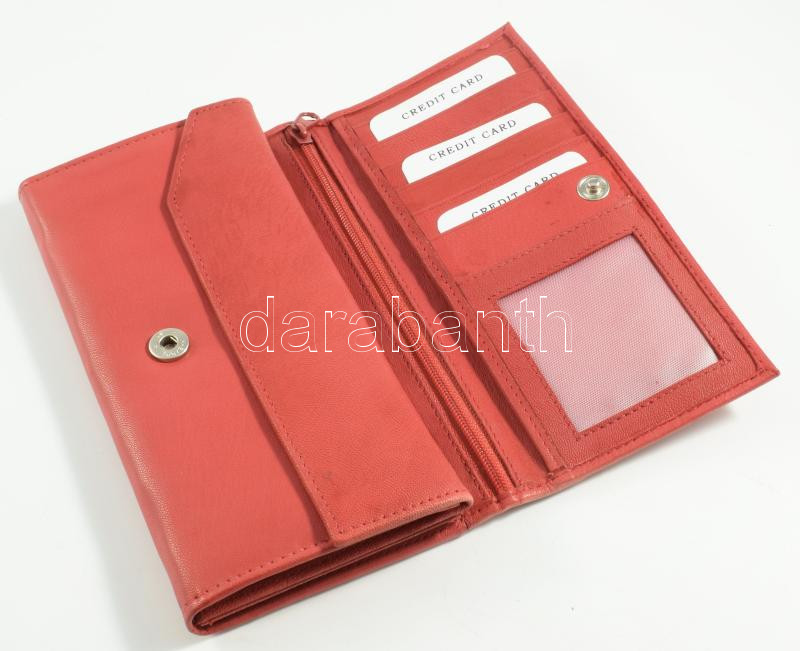 Piros bőr pénztárca, 9,5x17 cm