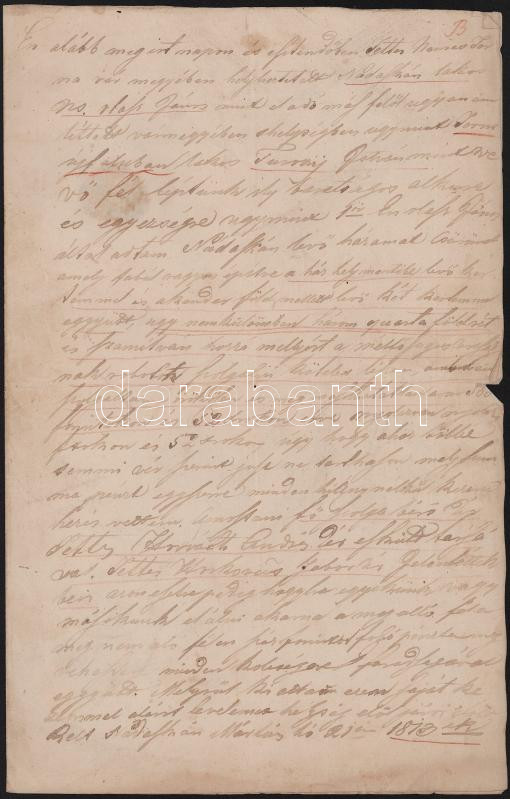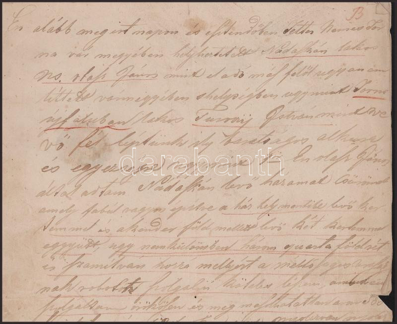 Olaszi János eladta nádaskai házát Turray Istvánnak. Az iratot hitelesítette az eladó Olaszi János, a főbíró Lukácsi István, Jobbágy István, a helység jegyzője, illetve tanúk voltka Székely István, Hajdú György, Grosz Mihály. Az iratot vörös viaszpecséttel látták el, ép állapotban. Két beírt oldal, magyar nyelven, megfakult íráskép.