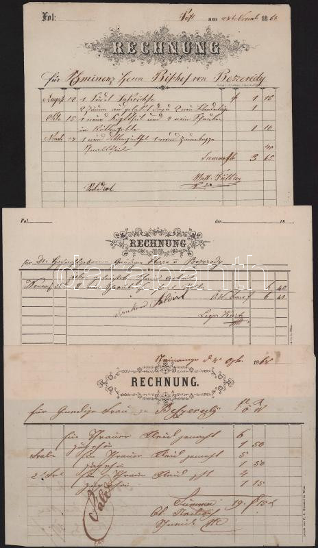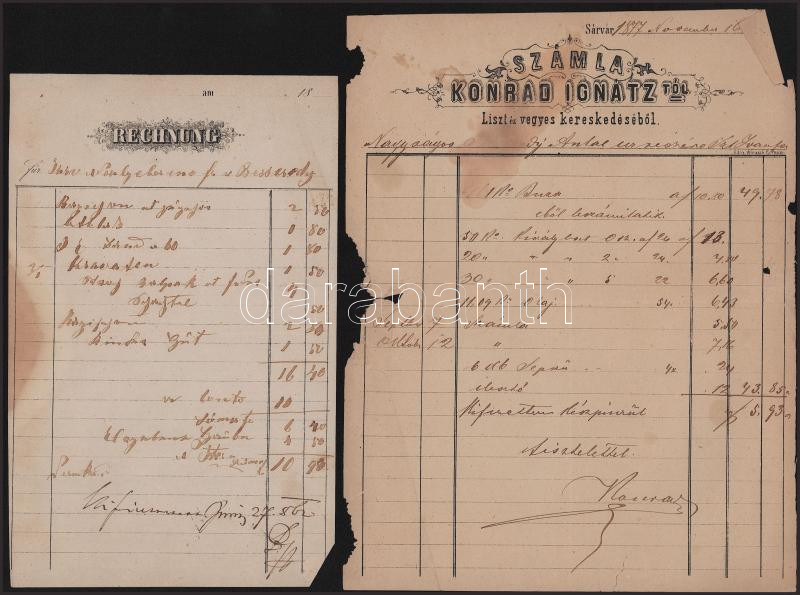 1877 Sárvár, Konrád Ignátz Liszt és vegyes kereskedése számla + más számlák
