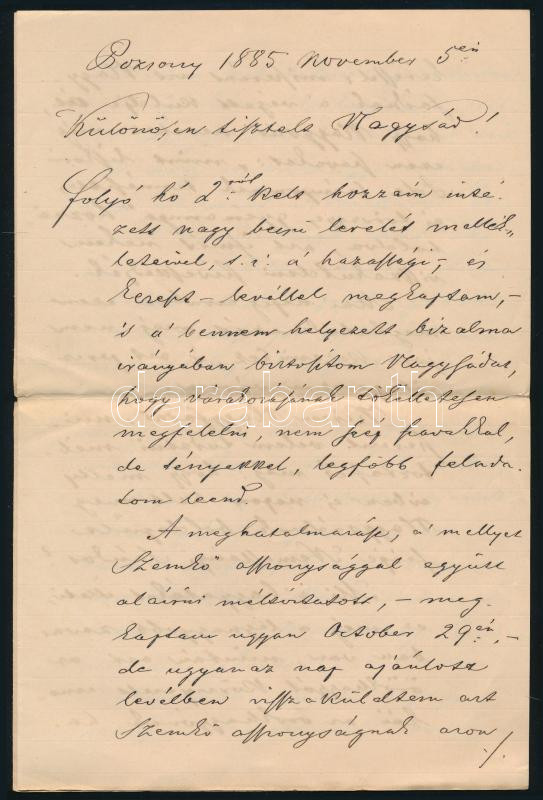 1885 Pozsony, Mayer István ügyvéd levele öröklési ügyben