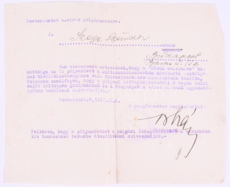 1915-1935 Szegi Sándor szobrászművész és Györgyi Kálmán aláírása leveleken, hadiemlékmű fotója, érdekes anyag