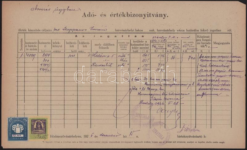 5 db irat 5 klf Hómezővásár helyi illetékbélyeggel