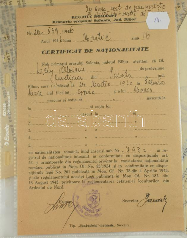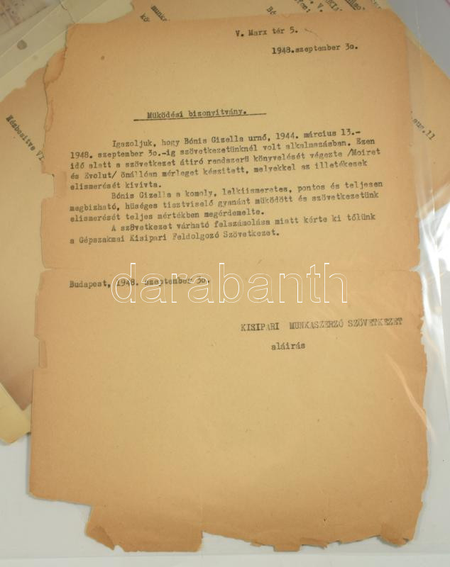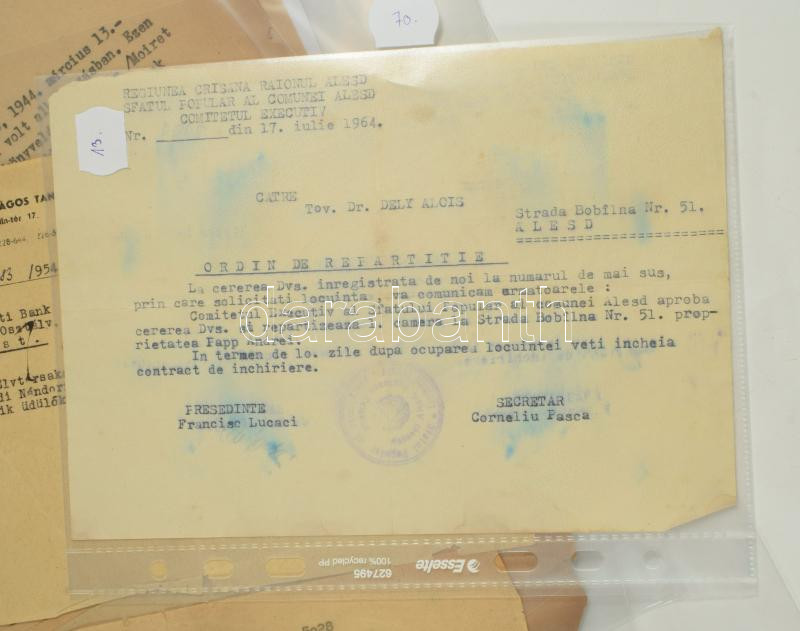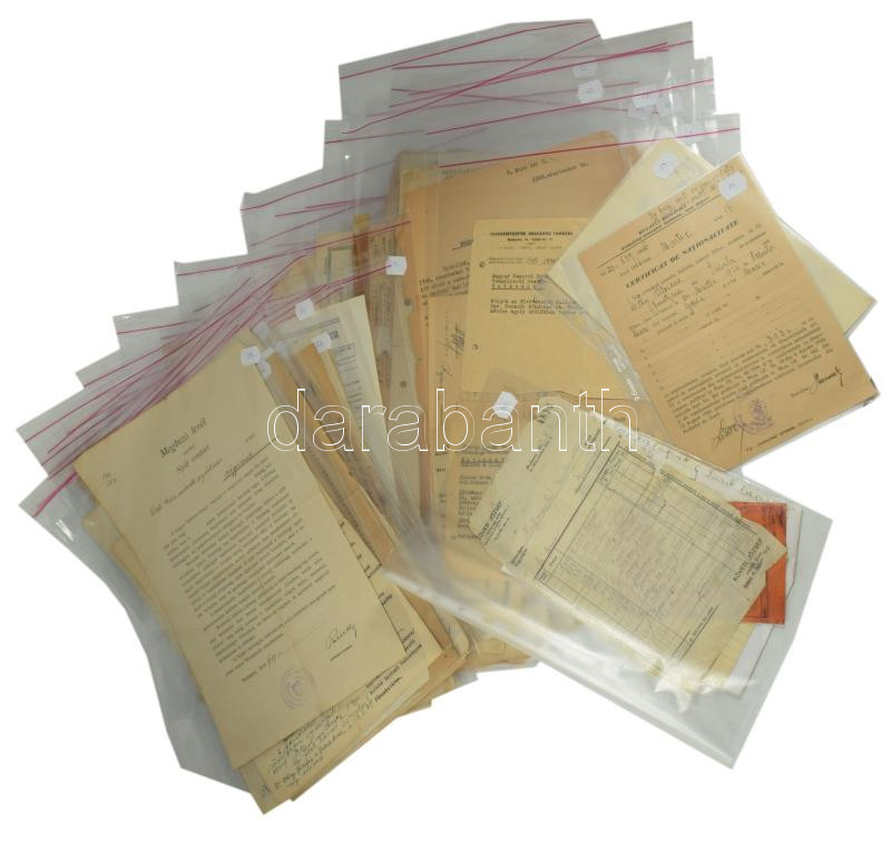 ca 1900-1960 nagy családi okmányhagyaték tétel Pécs, Erdély vonatokozású okmányok a Bónis, Dely családok tagjairól összesen 60 db részletesen feldolgozva, egyenként csomagolva