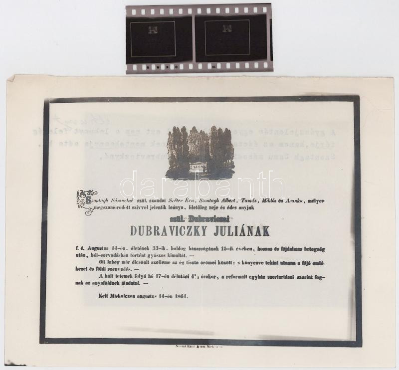 1861 Miskolc, téves szövegezésű halotti értesítő