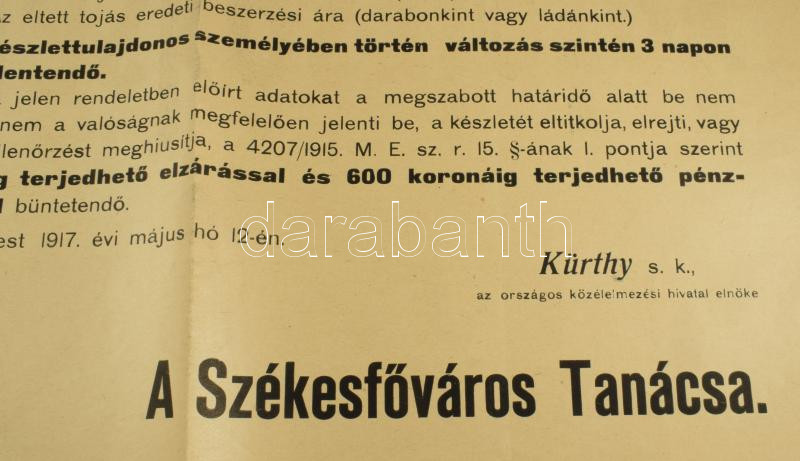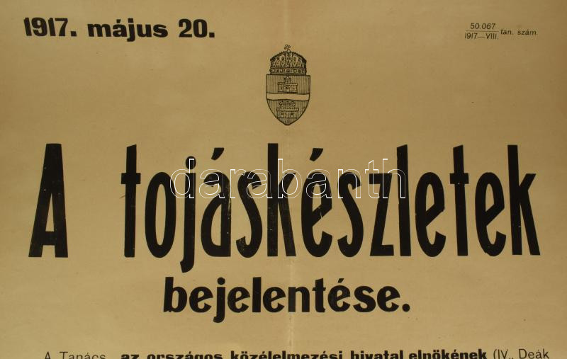 1917 A tojáskészletek bejelentése plakát méretű hirdetés, szakadásokkal