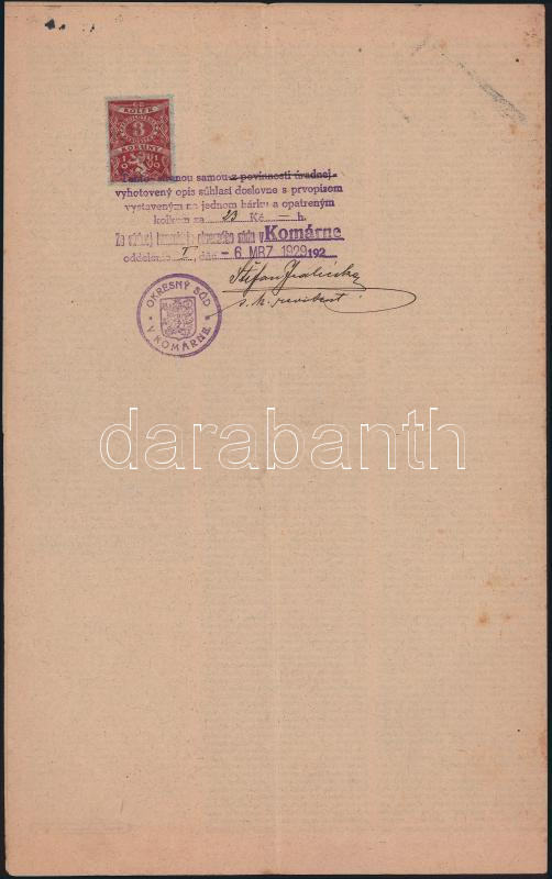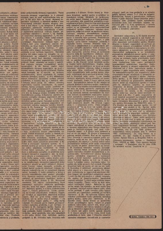 1929 A Szlovákiai Magyarok Kulturális Egyesületnek alapszabálya szlovák nyelven, hátoldalán hivatalos jóváhagyással