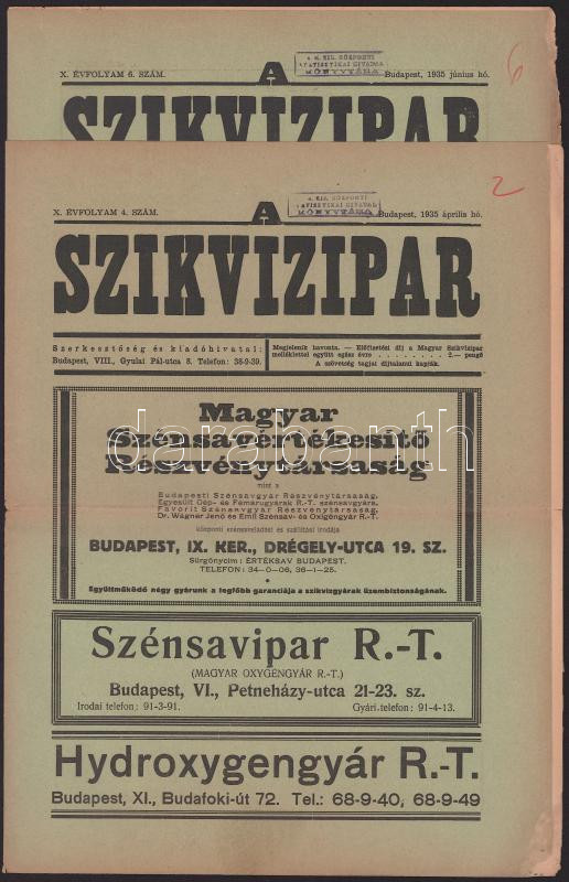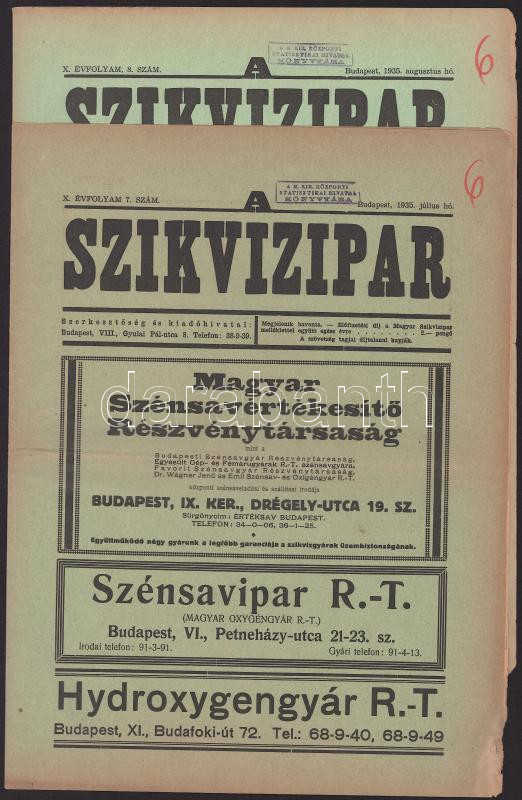 1935 Bp., A Szikvízipar X. évfolyamának több száma, hajtott