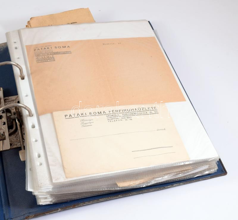 ca 1900-1960 Vegyes okmány gyűjtemény Miskolc környéki számlák, reklámok, egyéb iratok, okmányok, kb 60db gyűrűs berakóban