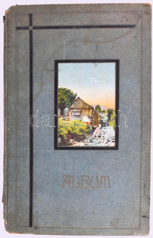cca 1900 Üres album képeslapokhoz, fotókhoz, kartonált kötés, gerinc sérült, kopottas állapotban