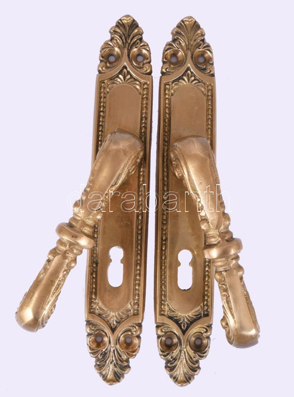 2 darab bronz zárcímer és kilincs, m: 23 cm