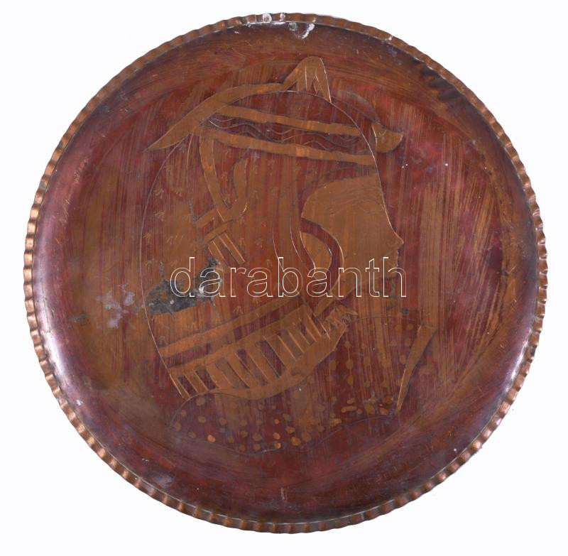 Egyiptomi stílusú réz dísztál, d: 20 cm