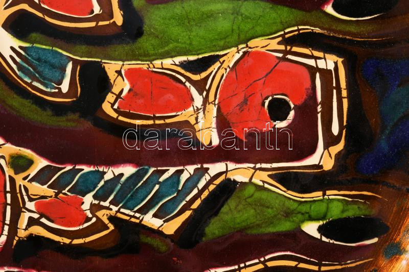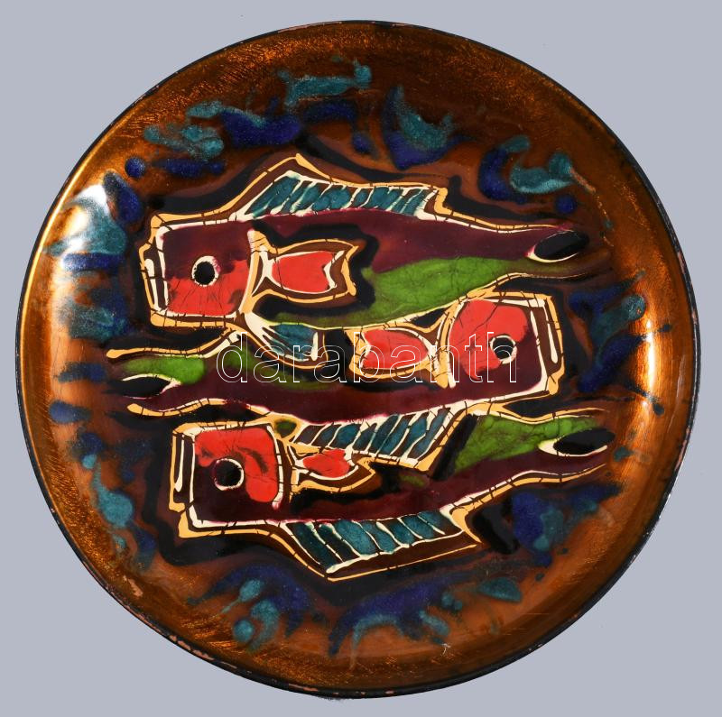 Halmintás zománcozott fém tál, kis mázhibával, d: 31,5 cm