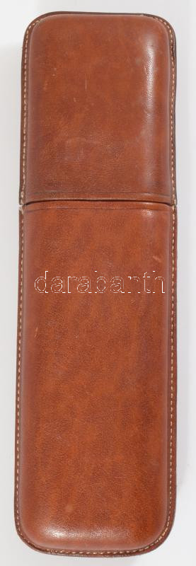 Kéthelyes bőr szivartartó, jó állapotban, h: 16 cm