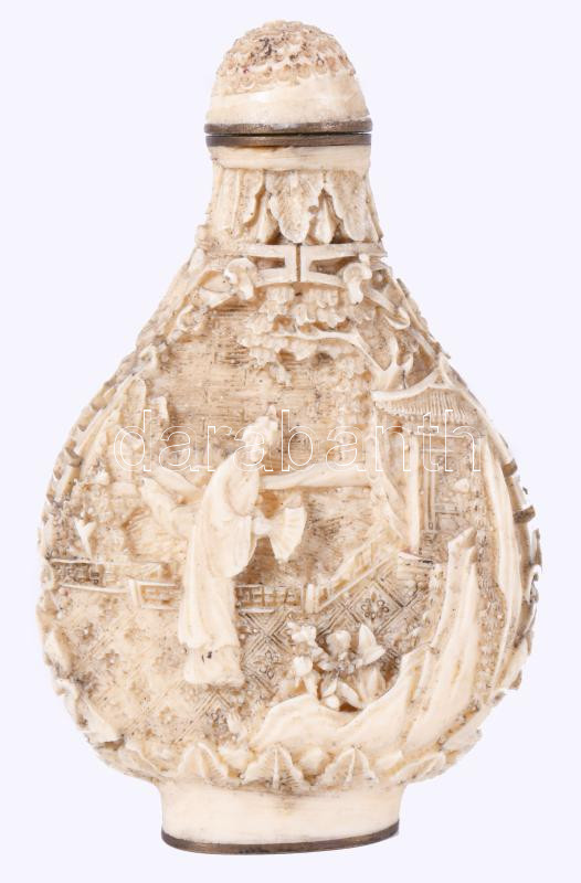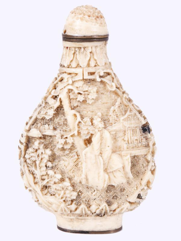 Kínai faragott lakk tubákos szelence, m: 7,5 cm