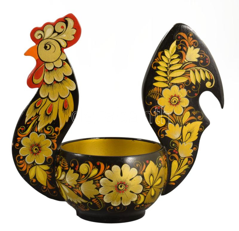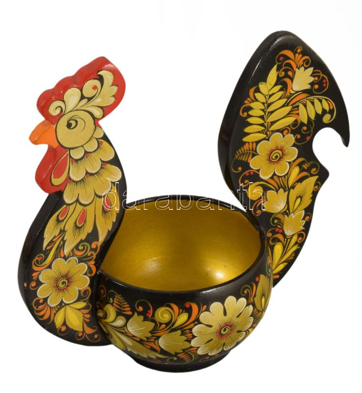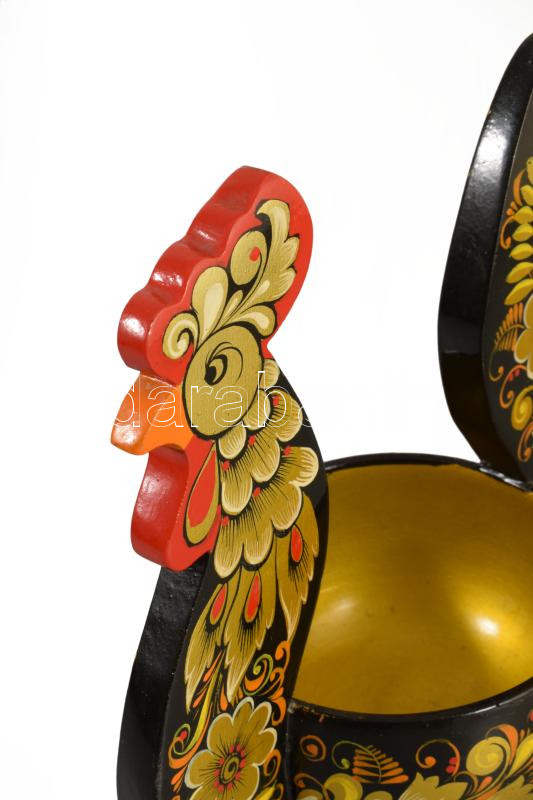 Orosz kézzel festett kakasalakos kínáló, m: 20 cm