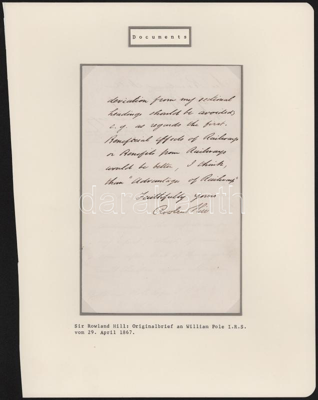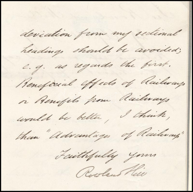 1867 Sir Rowland Hill (1795-1879) angol tanár, feltaláló, szociális reformer autográf levele, aláírásával // 1867 Autograph signed letter of Sir Rowland Hill (1795-1879) English teacher, inventor, social reformer