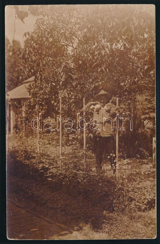 1918 Kézdi-Kovács László (1864-1942) festőművész, műkritikus autográf , saját rómaifürdői kertjét ábrázoló fotólapja Sárdy Brutusné Kézdi-Kovács Lenkéhez, Sárdy Brutus állomáshelyére