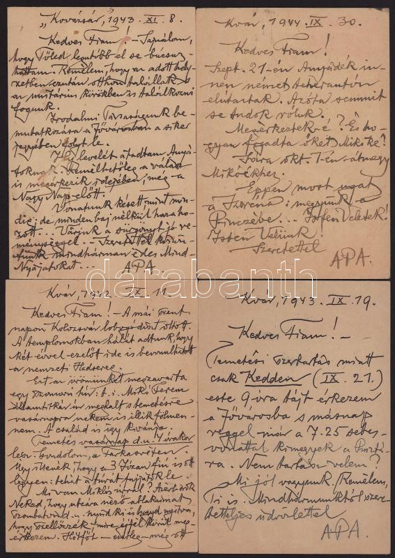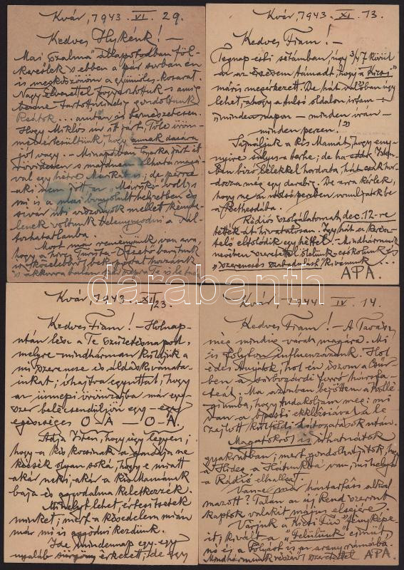 1942-1944 Kolozsvár, Józan Miklós (1869-1946) erdélyi magyar unitárius püspök 28 db saját kezűleg megírt levelezőlapja