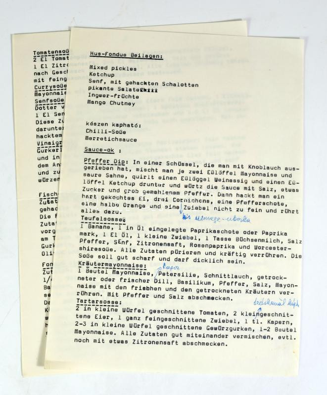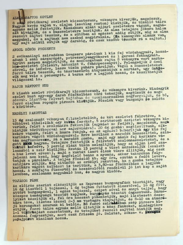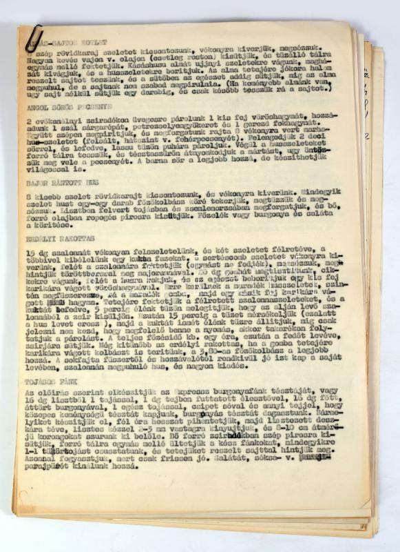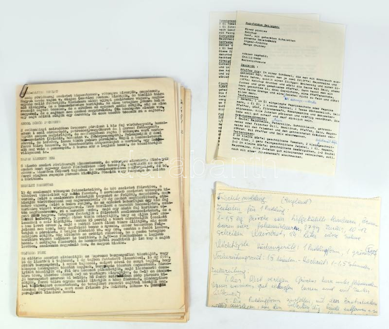 Receptgyűjtemény, kézzel írt és gépelt, magyar és német nyelvű receptekkel