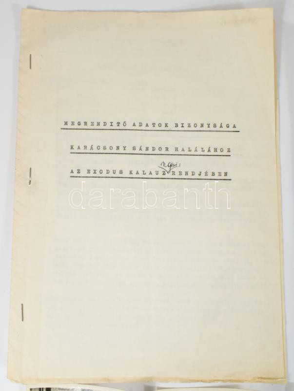 ca 1940 Karácsony Sándor (1891-1952) író emléke 2 db eredeti fotó 23x17 cm, 7x9 cm, + 6 sokszorosított fotó, egy eredeti szénrajz, egy nyomat, és egy meghívó 100. születésnapjára rendezett megemlékezésre. + gépiratos szöveg